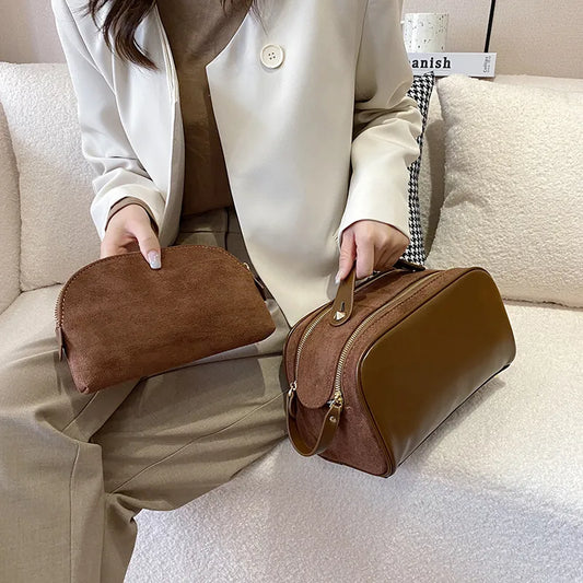 Kosmetiktasche für Damen ⎜ Große Kapazität mit Wildleder-Optik und praktischem Tragegriff