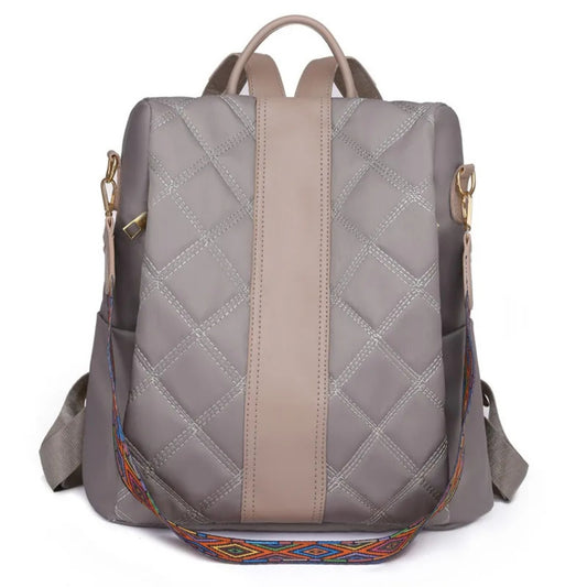 Damen Rucksack ⎜ Modischer Rauten-Design Träger mit buntem Schulterriemen