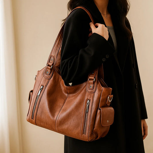 Modische Umhängetasche für Damen ⎜ Elegante Schultertasche aus hochwertigem Leder mit praktischer Form