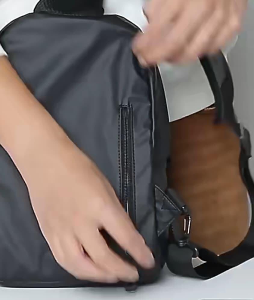 "Die Brusttasche sieht modern aus und fühlt sich sehr hochwertig an. Besonders praktisch finde ich das kompakte Design, mit dem ich auf Reisen oder in der Stadt alles Wichtige sicher und griffbereit habe."