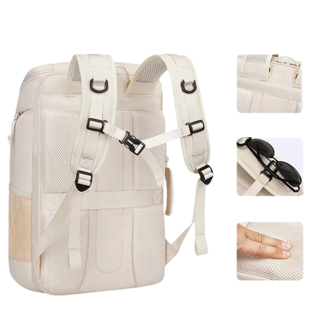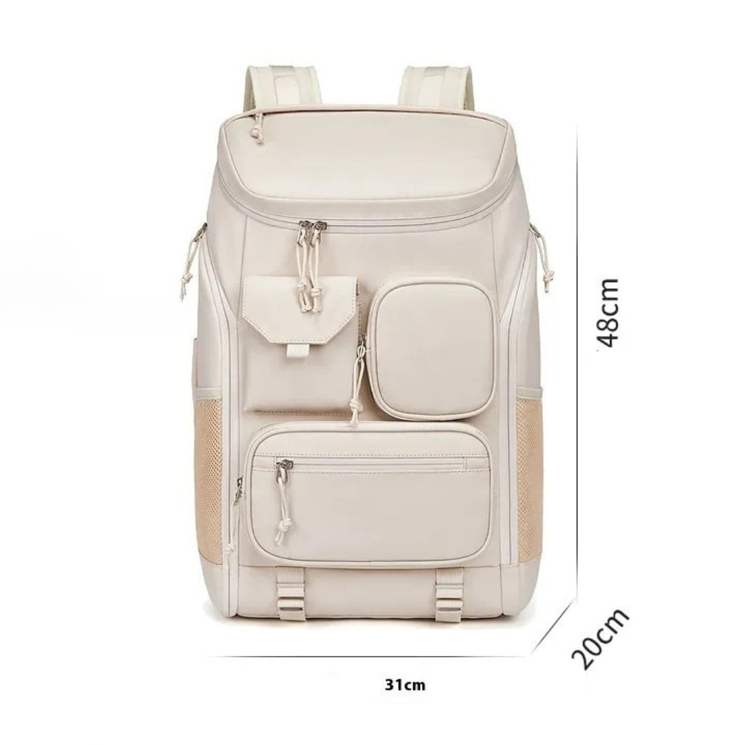 "Der Rucksack sieht nicht nur stylisch aus, sondern bietet auch extrem viel Platz für alles, was ich auf Reisen oder im Alltag braucheBesonders die vielen Fächer machen das Organisieren von Laptop, Kleidung und Kleinteilen super einfach"