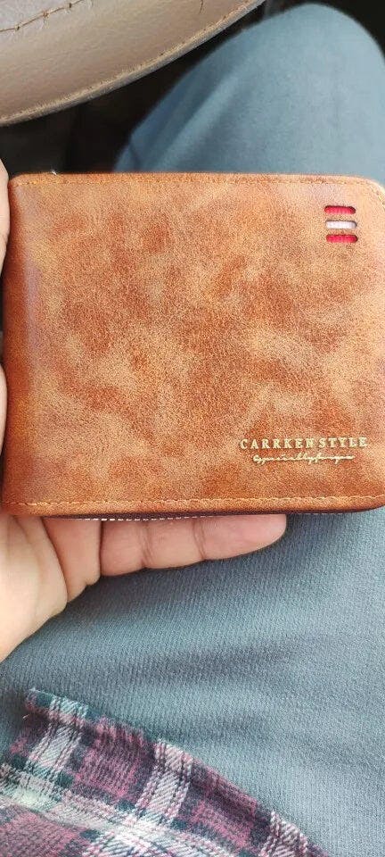 Die Herren Geldbörse mit Reißverschluss ist sehr praktisch und bietet ausreichend Platz für Karten und Bargeld. Die Tri-Fold Struktur sorgt für eine kompakte Form und erleichtert das Tragen in der Tasche.