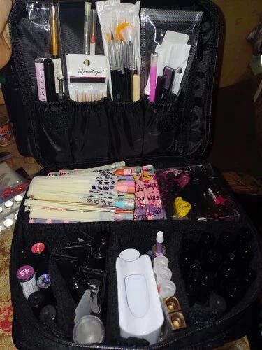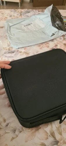 "Die Kosmetiktasche ist perfekt für Reisen und bietet mit ihren Fächern und dem praktischen Pinselhalter viel Stauraum für meine Produkte. Sie hält alles ordentlich organisiert und ist trotzdem kompakt genug, um problemlos in meine Tasche zu passen."