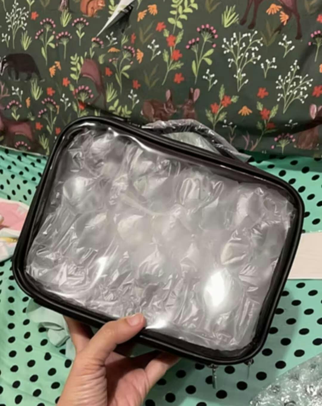 Die Tasche ist stabil und schützt meine Produkte perfekt beim ReisenIch sehe sofort, was drin ist und muss nicht lange suchen