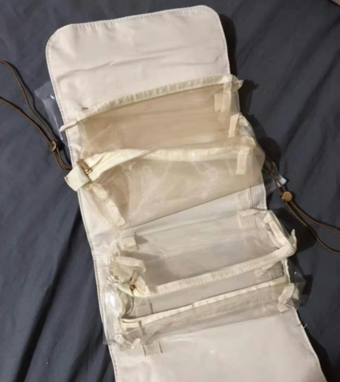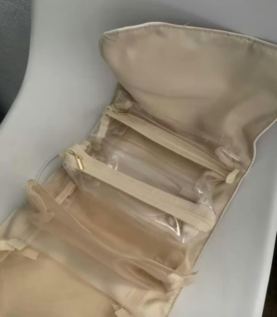 "Die Kosmetiktasche sieht super elegant aus und bietet erstaunlich viel Platz für all meine Produkte. Durch das praktische Umschlag-Design mit Reißverschluss bleibt unterwegs alles sicher verstaut und schnell griffbereit."