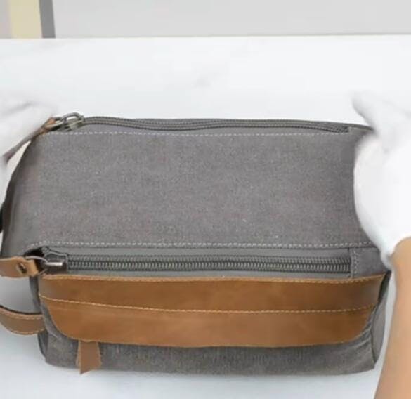 Diese Kulturtasche für Herren ist die perfekte Kombination aus Robustheit, Funktionalität und zeitlosem Design. Mit ihrem widerstandsfähigen Canvas-Material, hochwertigem Kunstlederbesatz und praktischem Reißverschlussfach bietet sie dir auf Reisen alles, was du brauchst – gut sortiert und immer griffbereit.