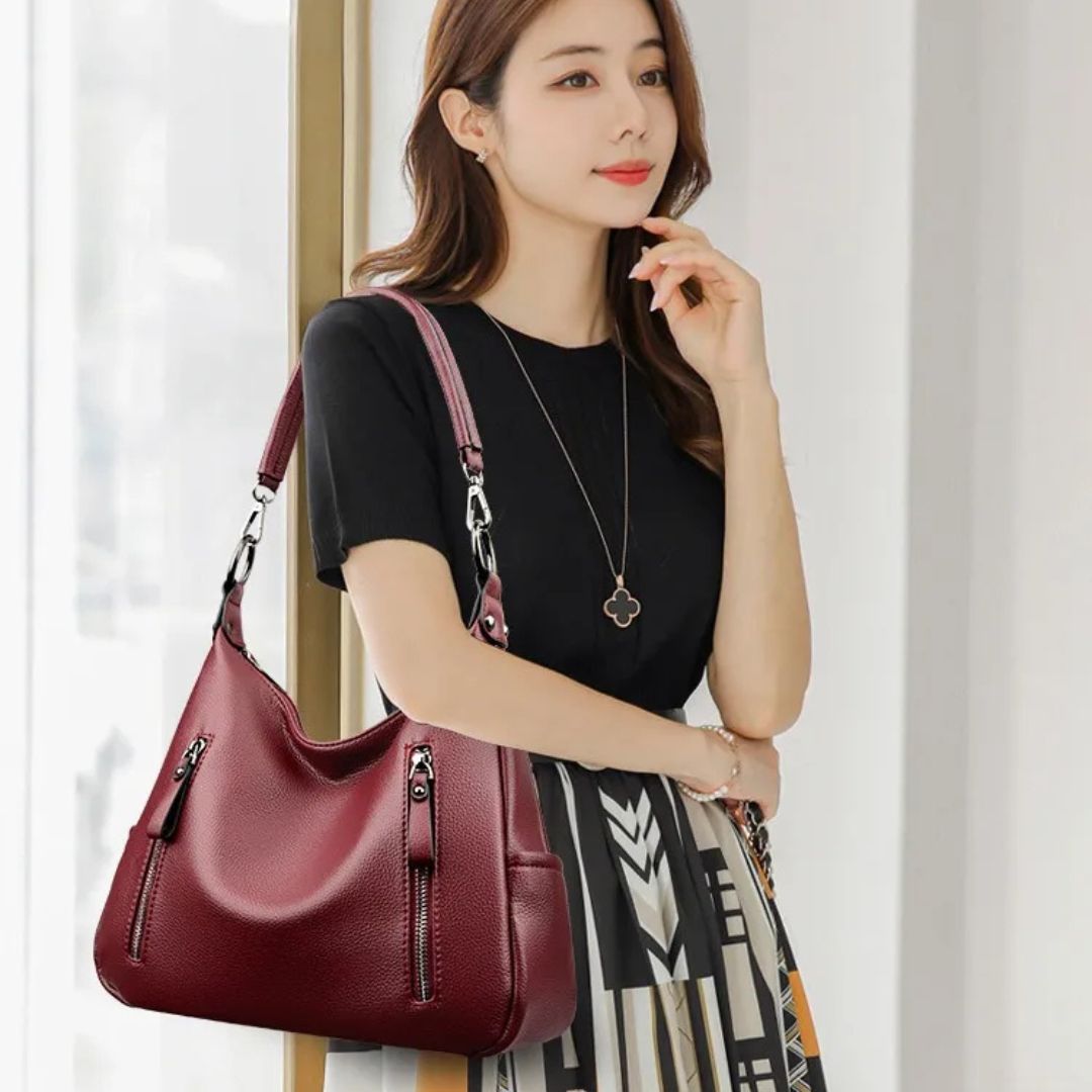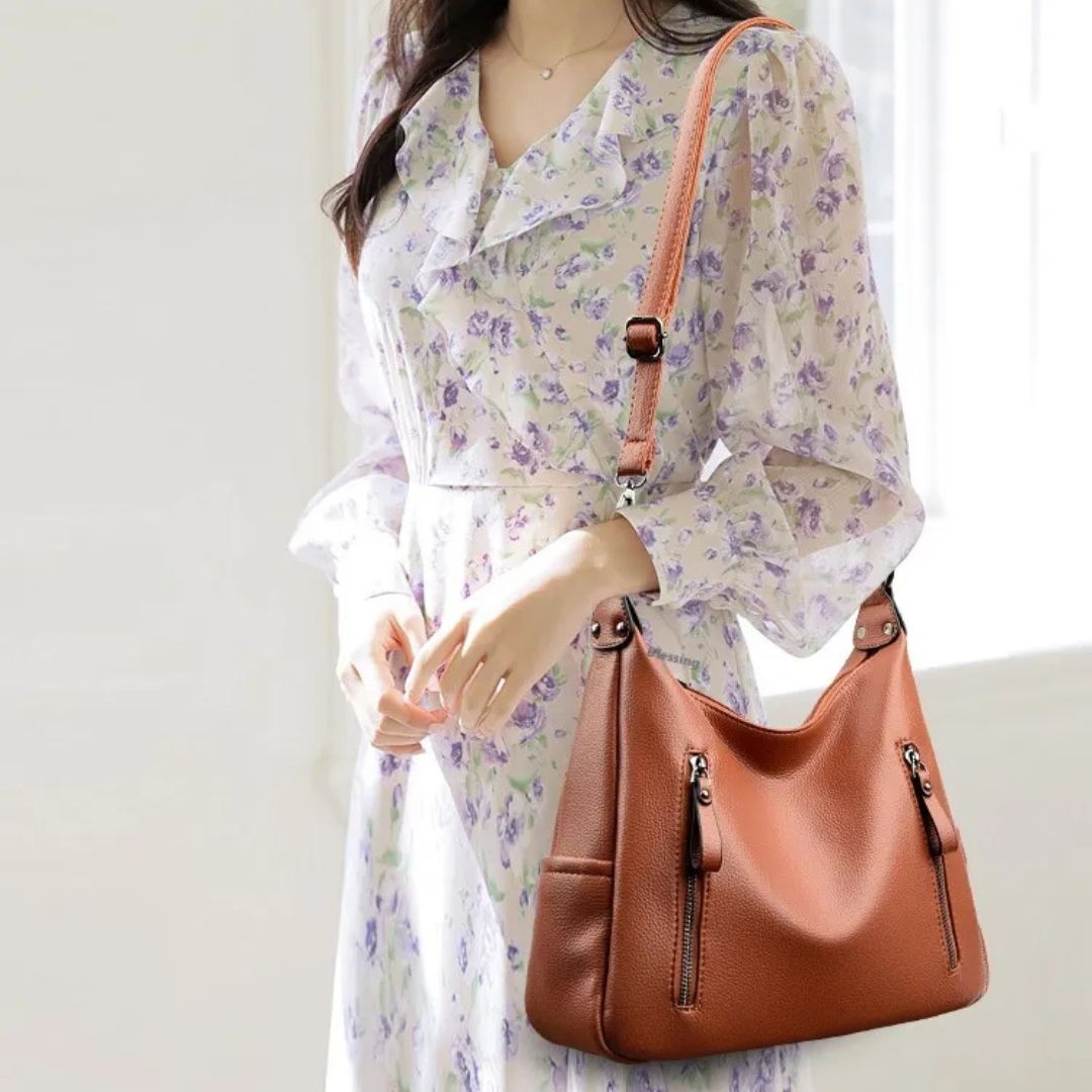 Klassische Henkeltasche für Damen – Modische Umhängetasche mit praktischen Reißverschlussfächern