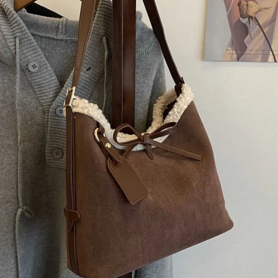 Die warme Haptik des Materials und das flauschige Innenfutter machen diese Tasche zur idealen Wahl in der Herbst- und Wintersaison. Ob beim Bummeln durch die Stadt oder beim Treffen mit Freunden – sie verleiht jedem Outfit ein charmantes Finish.