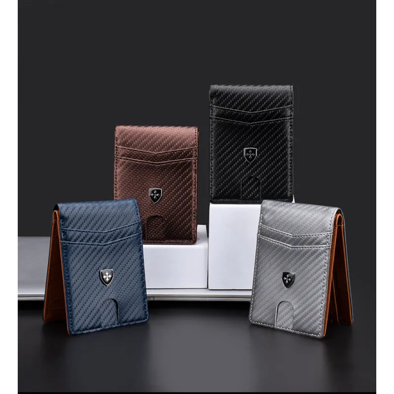 Die kompakte Faltbörse aus hochwertigem Carbonleder bietet dir nicht nur eine elegante Optik, sondern auch zuverlässigen Schutz für deine Karten und persönlichen Daten. Mit einem praktischen Sichtfenster für schnellen Zugriff und gut strukturierten Kartenfächern ist diese Geldbörse die perfekte Wahl für Männer, die sowohl Stil als auch Sicherheit schätzen.