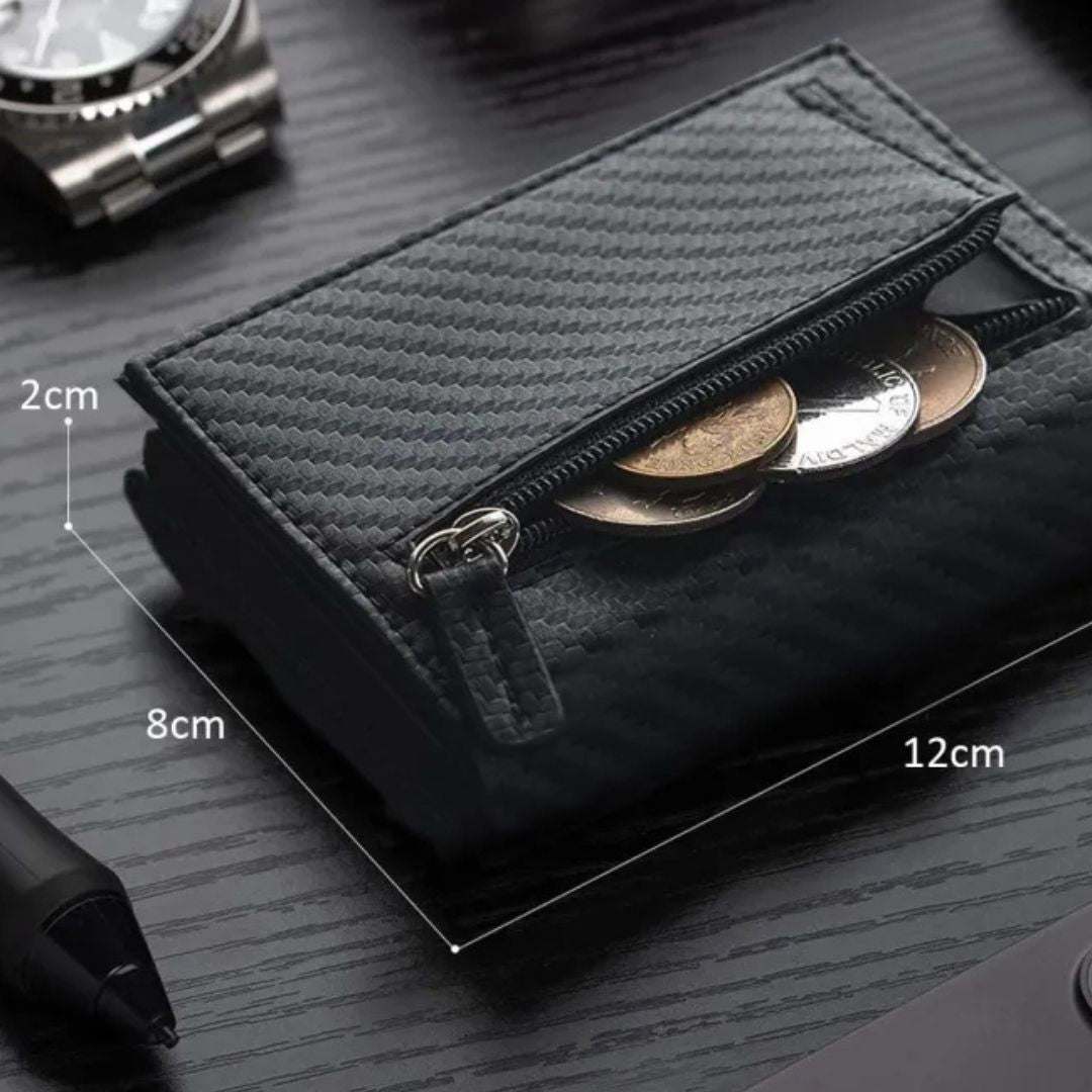 Diese Carbonbörse ist extrem praktisch und passt perfekt in jede Tasche. Der Auswurfmechanismus funktioniert tadellos und sorgt für schnellen Zugriff auf meine Karten.