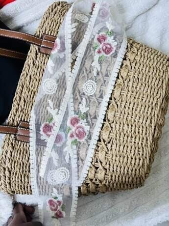"Diese Strohtasche ist einfach perfekt für den Sommer! Sie bietet nicht nur viel Stauraum für meine Sachen, sondern das Blumenband macht sie zu einem echten Hingucker, der jedes Outfit aufpeppt."