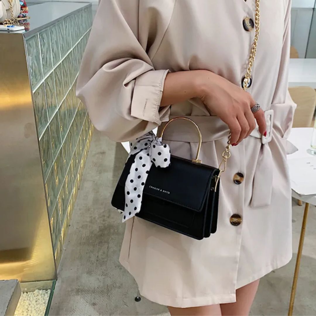 Egal, ob du dich für ein Casual-Outfit oder ein schickes Abendoutfit entscheidest – diese Tasche ergänzt deinen Style auf perfekte Weise. Die charmante Polka-Dots Schleife setzt ein verspieltes Detail, während die goldene Kette das elegante Gesamtbild abrundet.