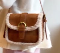 "Die Vintage Umhängetasche aus Lammwolle ist einfach bezaubernd und verleiht jedem Outfit eine elegante Note. Der praktische Schnallenverschluss hält die Tasche sicher geschlossen, während der verstellbare Trageriemen für hohen Tragekomfort sorgt."
